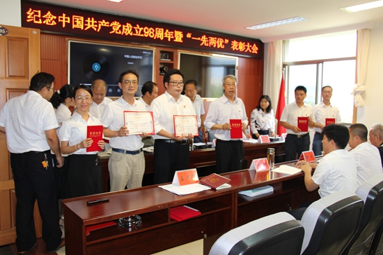 为庆祝中国共产党成立98周年,深入学习贯彻习近平新时代中国特色社会主义思想,全面贯彻落实党的十九大和十九届二中、三中全会精神,继续巩固和深化“增强党员意识、树立党员形象,做合格党员”活动,持续推进“两学一做”学习教育常态化制度化,深入开展“不忘初心、牢记使命”主题教育,激励机关广大共产党员和基层党组织自觉践行党的宗旨,进一步增强机关基层党组织的凝聚力和战斗力,激励广大党员干部更好地发挥战斗堡垒和先锋模范作用,红河州发展改革委于6月28日下午召开中国共产党建党98周年暨“一先两优”表彰会议。