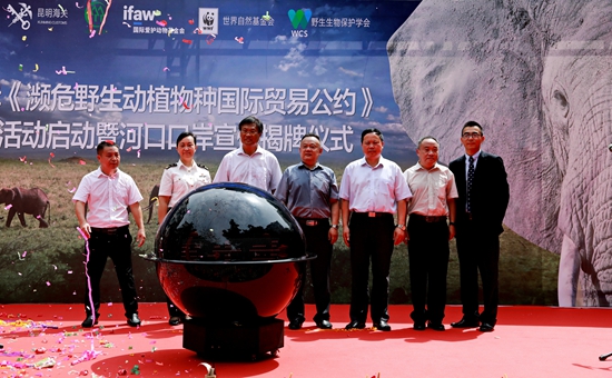 以“树立履约形象、加大禁止野生动植物非法贸易宣传”为主题的云南省重点口岸《濒危野生动植物种国际贸易公约》履约宣传系列活动启动暨河口口岸宣传揭牌仪式活动,于6月26日在红河州河口县隆重举行。