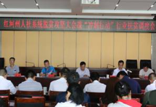9月12日,全州人社系统脱贫攻坚大会战“冲刺行动”行业扶贫调度会在蒙自召开。会上,戴劲松局长传达了全省推进农村劳动力转移就业工作现场会议精神,并强调要深入实施全州脱贫攻坚大会战“冲刺行动”,实现建档立卡贫困人口充分就业和100%参加养老保险,确保人社行业扶贫目标任务的圆满完成。