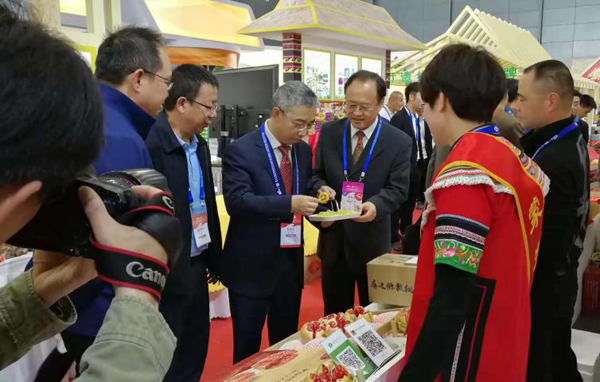 红河州组织蒙自蒙生石榴产销专业合作社、元阳粮食购销有限责任公司等5家企业参展,参展产品有石榴、猕猴桃、苹果、青柚、香蕉、梯田红米、荞制品、葡萄酒系列产品等20多个品种。