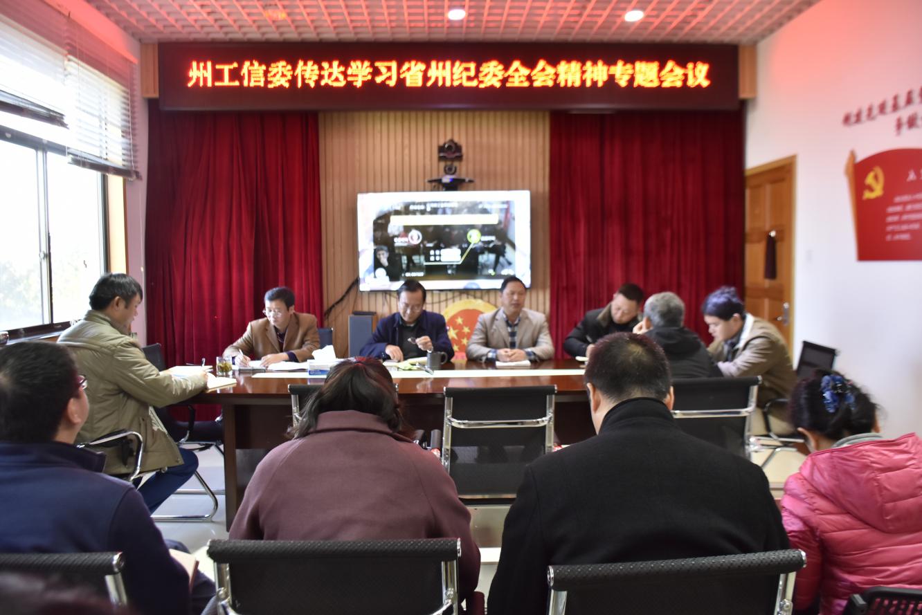 2018年2月14日上午,州工信委组织全体干部职工传达学习省、州纪委全会精神。委党组班子成员、全体干部职工共68人参会。