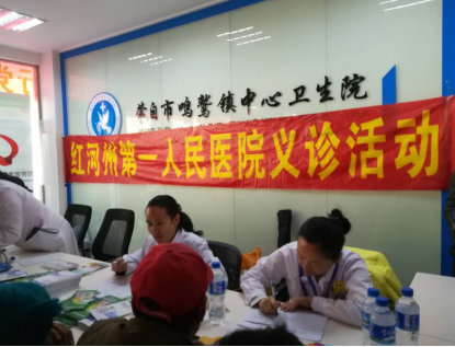 3月20日,红河州第一人民医院到蒙自市鸣鹫镇中心卫生院开展义诊活动,助推健康扶贫。