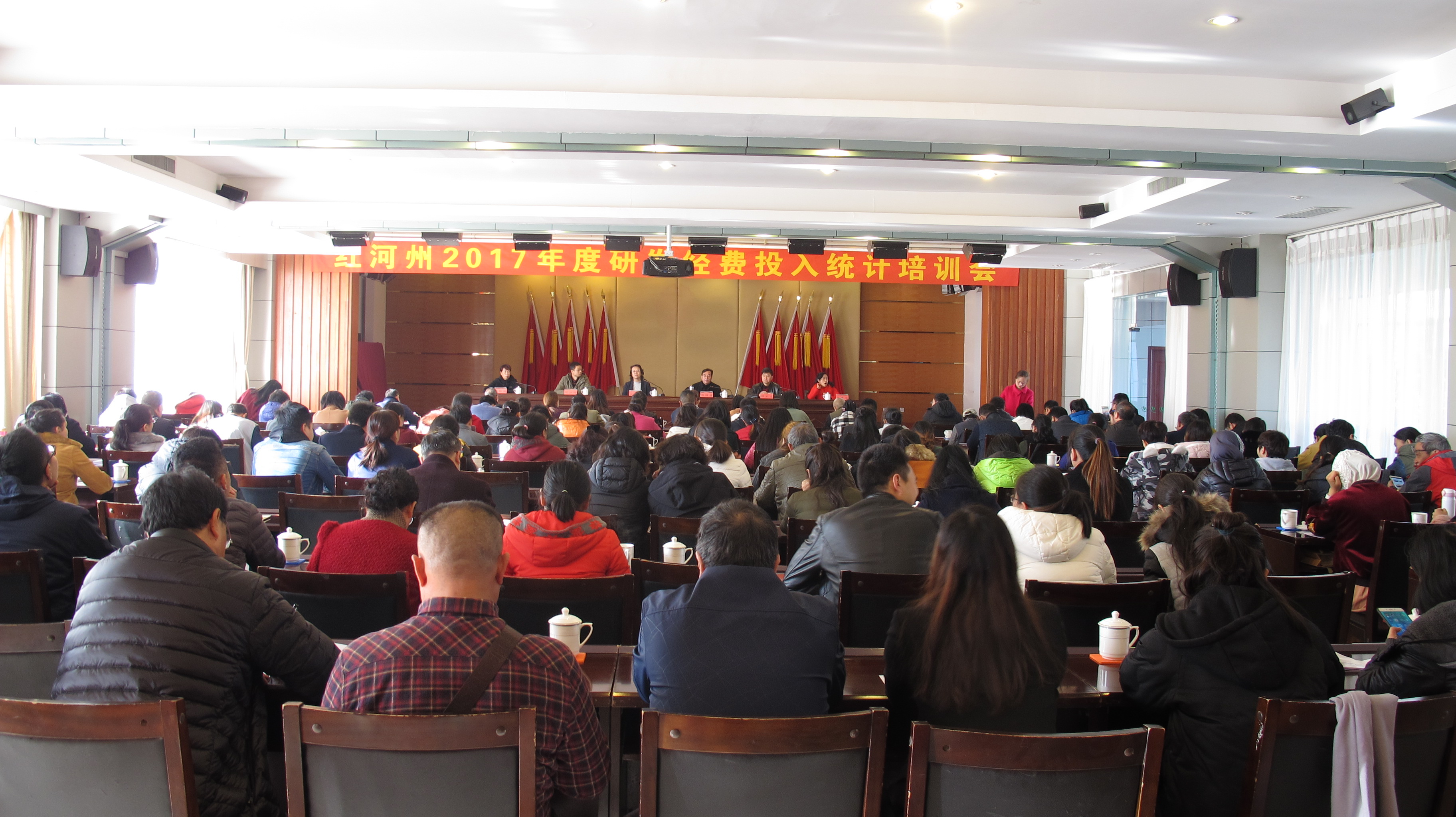 1月16日,红河州科技局、红河州统计局在蒙自市联合举办了红河州2017年度研发经费投入统计培训会,全州县市科技局、规模以上企业、科研站所120余家单位共170余人参加了培训会。州科技局局党组书记、局长杨旺林出席并就做好研发经费投入统计工作作动员讲话。