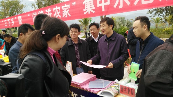 按照州委州政府的统一部署,红河州农业局高度重视,精心组织,由副局长马立岗带队,由局科教科、州农科所、植保站、畜牧站、种子站、执法支队的科技人员和专家组成工作队伍,于1月22日赴金平县勐拉镇参加“红河州2017-2018年度文化科技卫生‘三下乡’暨‘法律进农家’集中示范活动”。