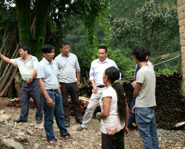 州审计局和乡、村两级领导商议李羊者一家安置问题