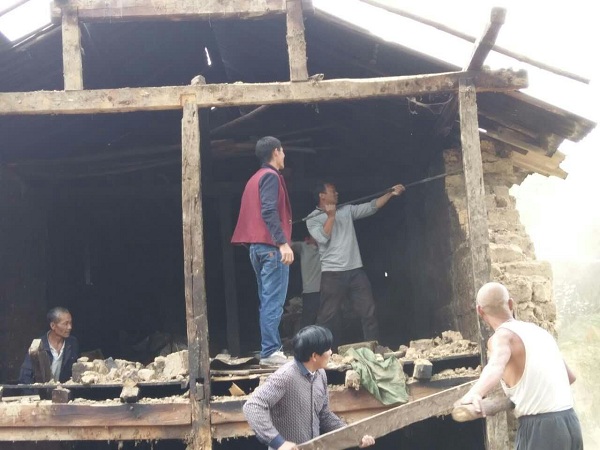 州审计局驻村队和村内党员对房屋进行排危拆除