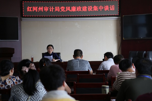 近日,红河州审计局为了进一步抓好“两个责任”的落实,深入推进党风廉政建设及廉政风险防控工作,提升审计干部依法履职和自我约束能力,对全局审计干部进行党风廉政建设集中谈话会。