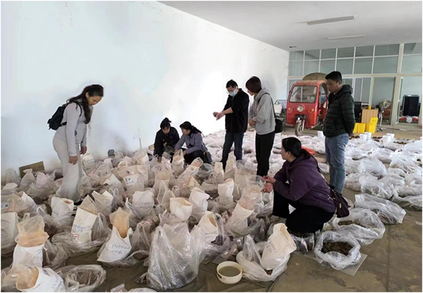红河州农科院土肥所技术团队在土壤样品风干制备现场查看了土壤样品,对土壤采样制备人员开展了土壤样品风干制备、样品留样、包装转运及送检的技术规程规范指导,重点检查样品数量、质量、样品标签、标签信息和包装组合等,摸清当前样品送达缓慢的瓶颈,确保样品包装符合要求和及时有序送达样品。强调要严格按照《第三次全国土壤普查土壤样品风干技术规定》要求进行风干转运送检。一是样品风干场地要求通风良好、整洁、无易挥发性化学物质,并避免阳光直射。二是样品风干单位至少确定1名样品风干负责人和1名质量检查员,每个样品风干负责人、质量检查员需通过国家或省级土壤普查办统一组织的相关技术培训,取得培训合格证。三是样品风干过程要按照耕地园地表层样品、耕地园地剖面样品、林地草地表层样品、林地草地剖面样品、水稳性大团聚体样品分类分区摆放风干,两个样品间放置间距应不小于10cm,并用阻隔板等方式进行隔离,防止交叉污染。四是完全自然风干后的土壤样品,应分别称重并满足风干土壤重量(扣除碎石、石砾和动植物残体重量)和样品状况等要求后再行包装,包装后的样品标签、样品数量、样品重量、样品状况等应满足样品制备实验室接收样品的要求。五是在样品从风干环节移交制备环节时,应保证样品不受污染,水稳性大团聚体样品还应保持样品形态。