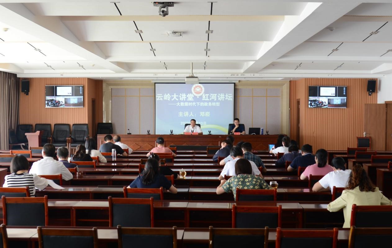 4月13日下午,红河州政务服务管理局开展“大数据时代下的政务转型”主题云岭大讲堂·红河讲坛培训,中共红河州政务服务管理局党组书记、局长李民杰主持培训会议。云南大学公共管理学科学术委员会主任、政府管理学院教授、云岭大讲堂主讲嘉宾邓崧应邀作专题报告。
