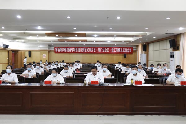 省委第四巡视组有关同志,省纪委省监委相关监督检查室负责同志,省级相关职能部门有关负责同志,红河州纪委监委、州委组织部相关同志,自贸区红河片区党工委领导班子成员出席会议;自贸区红河片区管委会有关负责人列席会议。