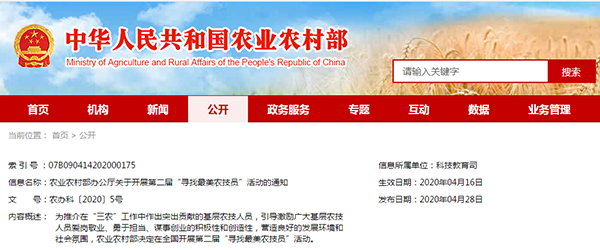 长期在县乡两级农技推广机构从事农技推广服务,当前仍在农技推广一线工作、业绩突出的农技人员注意啦!第二届“寻找最美农技员”活动开始啦。