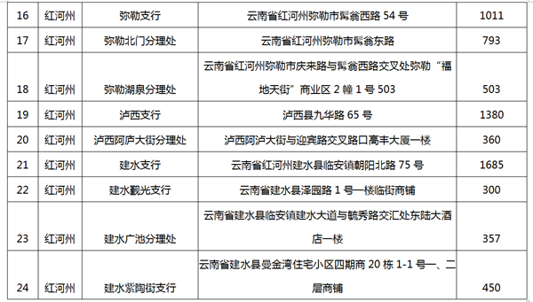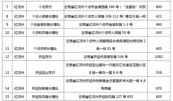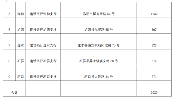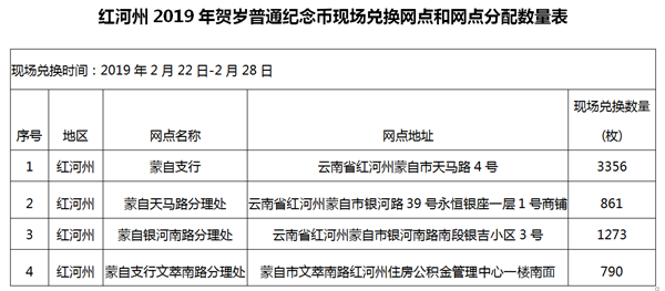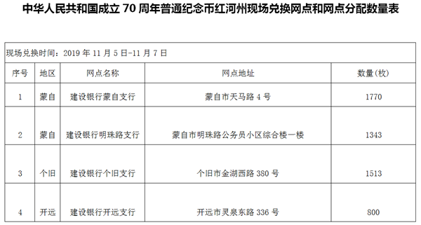 附件:中华人民共和国成立70周年普通纪念币红河州现场兑换网点和网点分配数量表