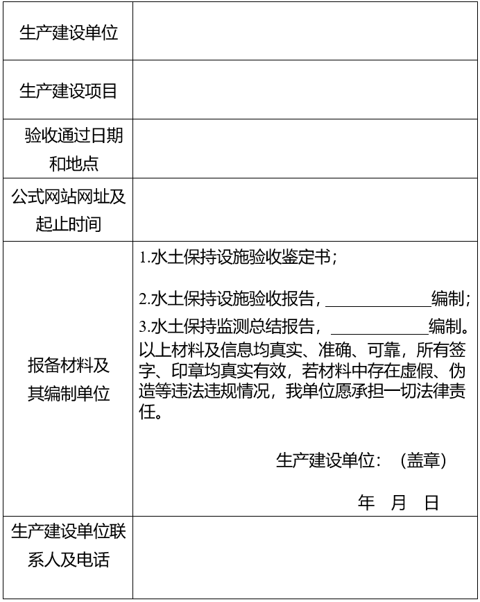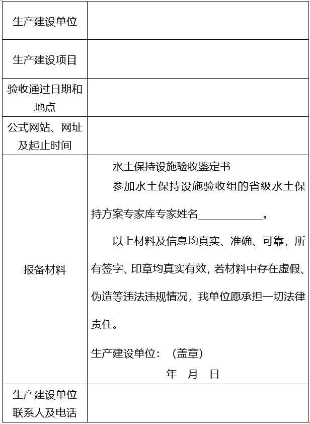 生产建设项目水土保持设施自主验收报备申请表参考式样