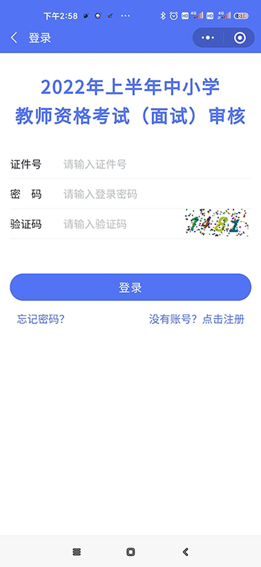 点击登录页的“还没有账号?点击注册”链接,进入注册页面,按页面上的要求填写注册信息。登录时,须输入证件号、密码,以及验证码。