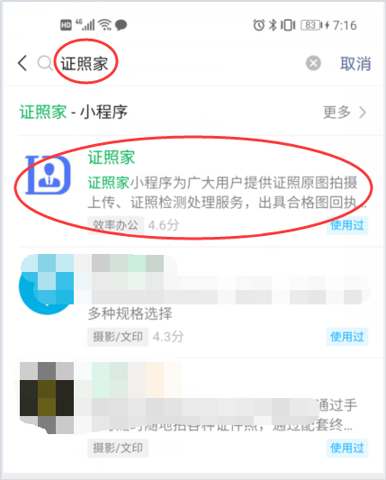 方式2:在微信搜索框输入“证照家”搜索(注意是小程序,不是公众号)
