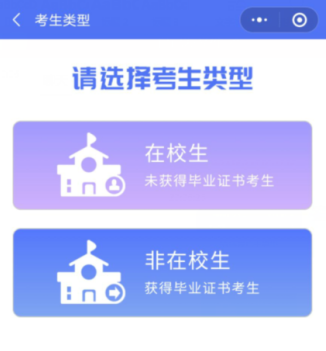 点击选择一种考生类型,在校生或非在校生: