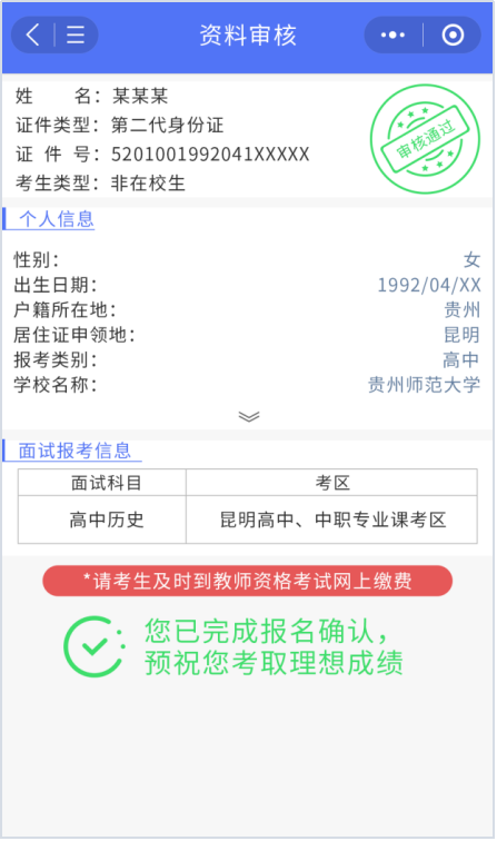 审核结论为通过的考生,前往全国中小学教师资格考试网进行缴费。缴费完成后,面试报名才算成功。