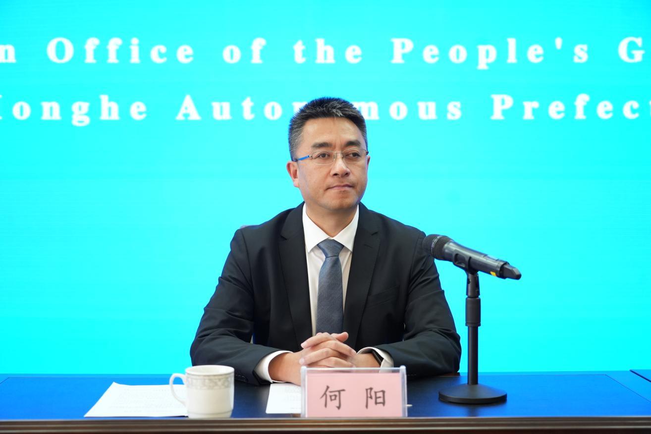 红河州人民政府新闻办公室专职副主任魏道俊主持新闻发布会