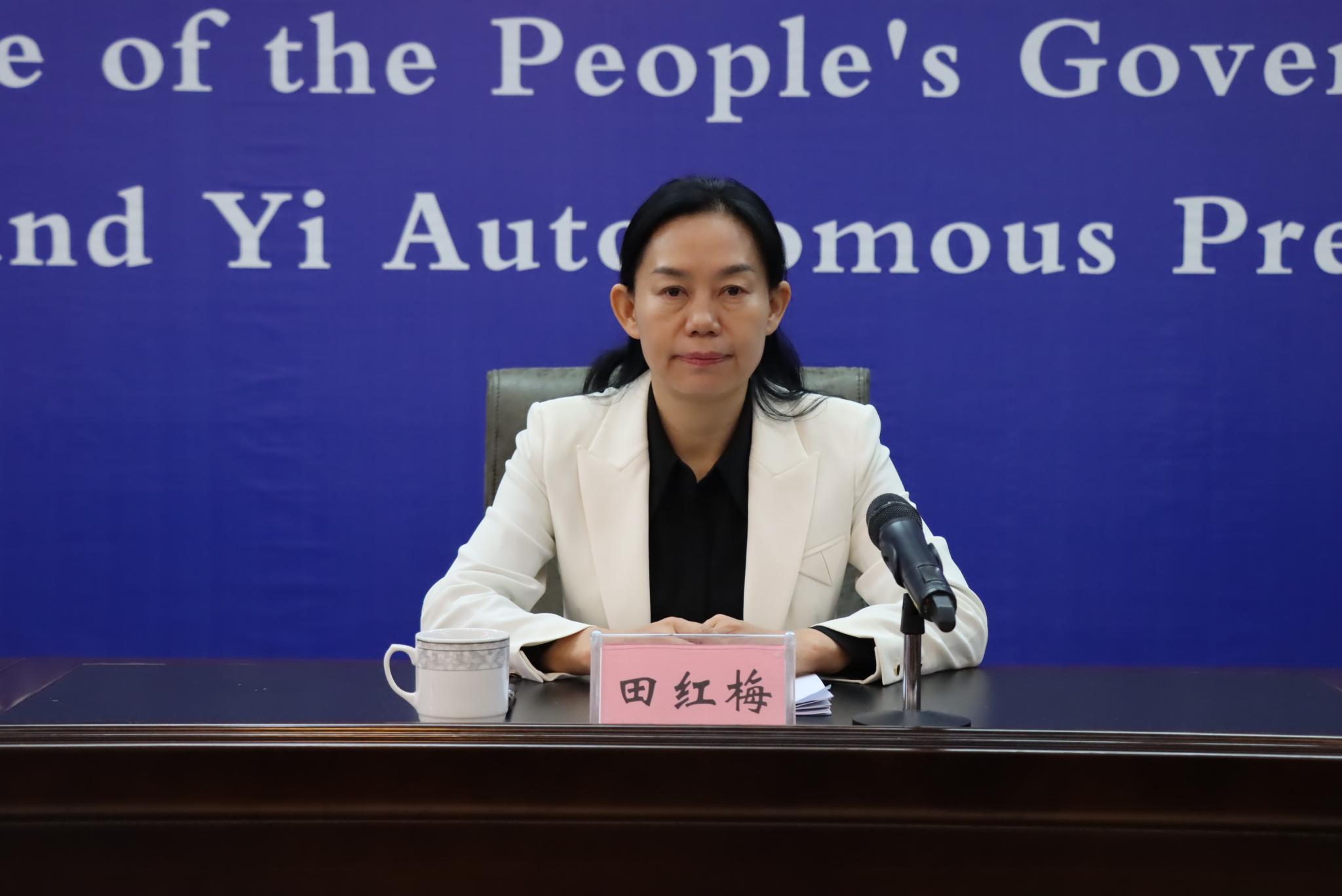 红河州人民政府新闻办公室专职副主任施梅主持新闻发布会