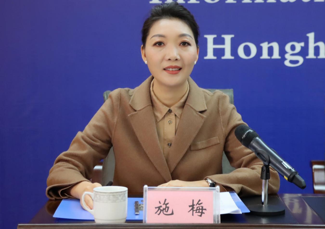 红河州人民政府新闻办公室专职副主任施梅主持新闻发布会