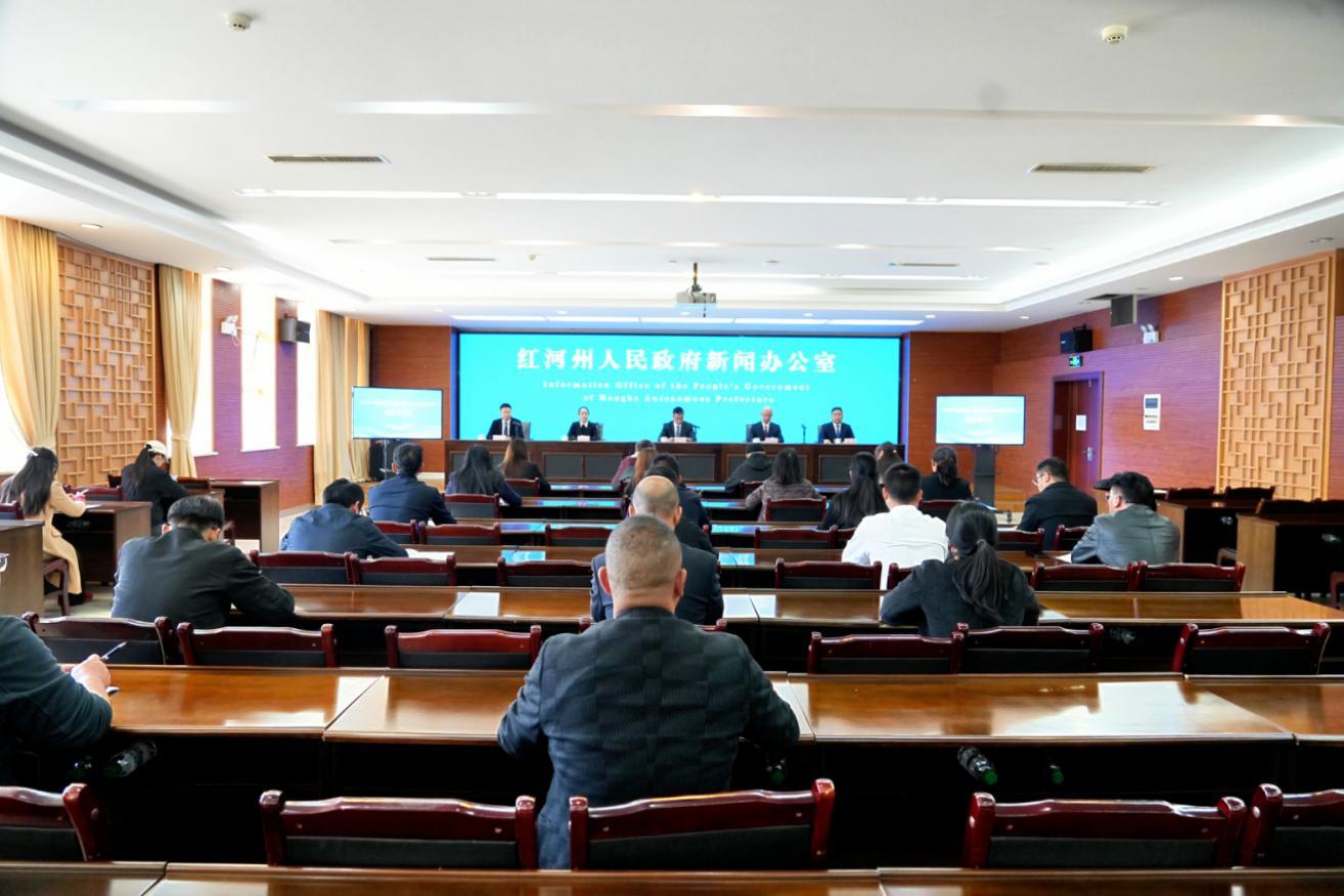 红河州人民政府新闻办公室专职副主任魏道俊主持新闻发布会