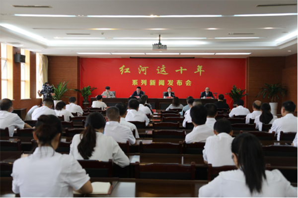 7月5日上午,“红河这十年”系列新闻发布会全面从严治党专场发布会,向社会公开发布有关情况,并回答记者提问。
