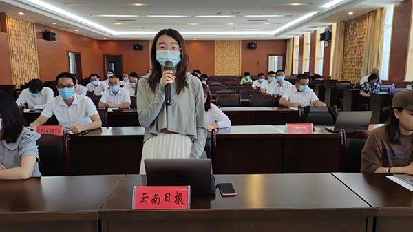 红河州人民政府新闻办公室专职副主任刘红梅主持新闻发布会