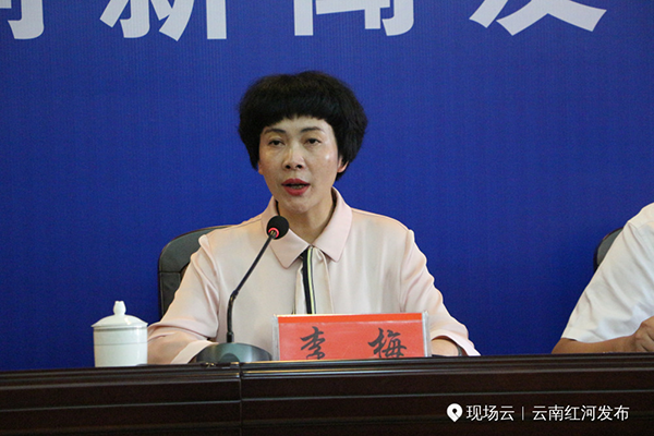 中共红河州委宣传部副部长、州政府新闻办主任杨芳主持新闻发布会