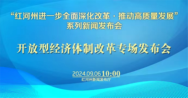 9月6日上午,“红河州进一步全面深化改革·推动高质量发展”系列新闻发布会·开放型经济体制改革专场向社会公开发布有关情况,并回答记者提问。