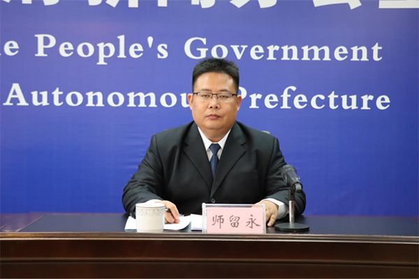 红河州商务局市场消费促进科科长、四级调研员穆道斌主持新闻发布会
