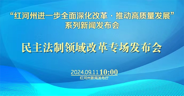 9月11日上午,“红河州进一步全面深化改革·推动高质量发展”系列新闻发布会·民主法制领域改革专场向社会公开发布有关情况,并回答记者提问。