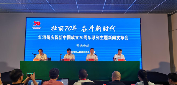 8月20日上午,红河州人民政府新闻办公室在红河展览馆举行“壮丽70年 奋斗新时代”红河州庆祝新中国成立70周年系列主题开远市专场新闻发布会,发布相关情况并回答记者提问。