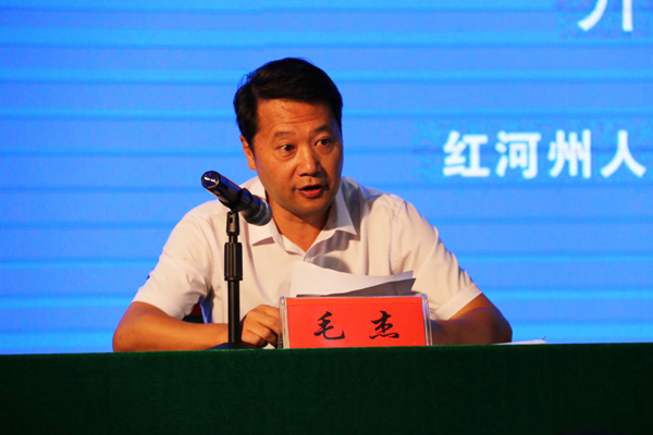 州委宣传部副部长、州政府新闻办主任毛杰主持新闻发布会