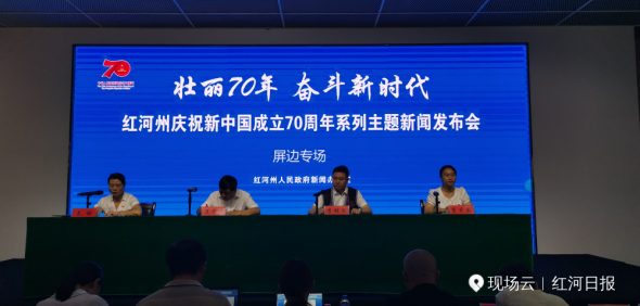 9月17日上午,红河州人民政府新闻办公室在红河展览馆举行“壮丽70年 奋斗新时代”红河州“庆祝新中国成立70周年”系列主题屏边县专场新闻发布会,发布相关情况并回答记者提问。