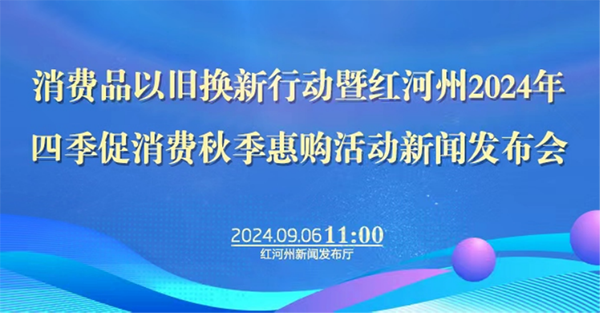 9月6日上午,消费品以旧换新行动暨红河州2024年四季促消费秋季惠购新闻发布会向社会公开发布有关情况,并回答记者提问。