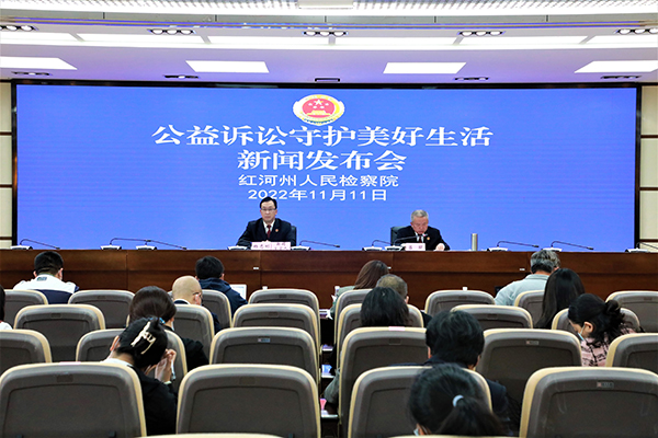 会上发布了《红河州泸西县人民检察院督促整治环境污染、欠缴水资源费等行政公益诉讼系列案》《云南省红河州蒙自市人民检察院督促整治保护“南湖荟”消防安全行政公益诉讼案》《红河干流马堵山水电站库区水环境治理行政公益诉讼案》和《红河州检察院、河口县检察院大围山国家级自然保护区曼路河水源地生物多样性保护行政公益诉讼系列案》等四个公益诉讼优秀案件。州检察院第八检察部主任吕琨就媒体记者提问进行了现场解答。