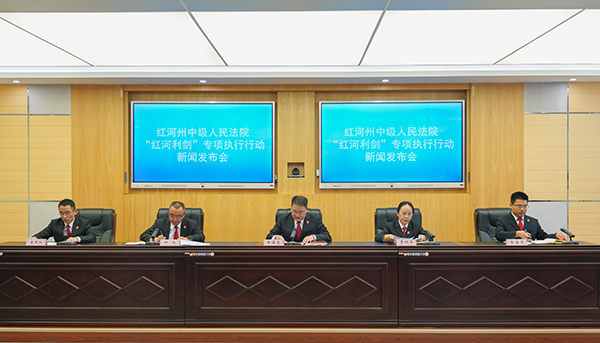 发布会上还介绍,此次“红河利剑”专项执行行动为期80天,将紧盯服务群众、服务法治化营商环境建设,做到“五个突出”,即突出执行为民理念、突出执行速度、突出执行“强制力”、突出执行“温度”、突出执行效能;实现“五个集中一批”,即集中快速执结一批、集中采取强制措施一批、集中评估拍卖一批、集中强制腾退一批、集中实质推进一批。工作开展中,将加强组织领导,形成全州法院执行工作“一盘棋”格局;全面统筹谋划,实行全州法院执行工作“一体化”推进;上下齐心协力,实行全州法院执行工作“一条心”攻坚,保障此次专项执行行动收到实效。
