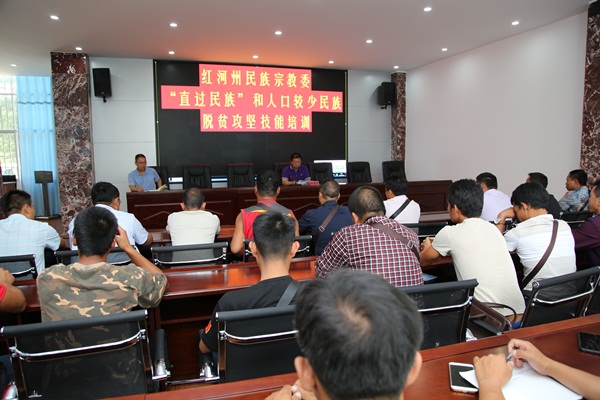 6月19日至21日,红河州民族宗教委举行“直过民族”和人口较少民族脱贫攻坚技能培训,金平县、绿春县、元阳县、河口县4县“直过民族”聚居区共51名村组干部、明白人、带头人和我州人口较少民族布朗族(莽人)2名村组干部参加培训。