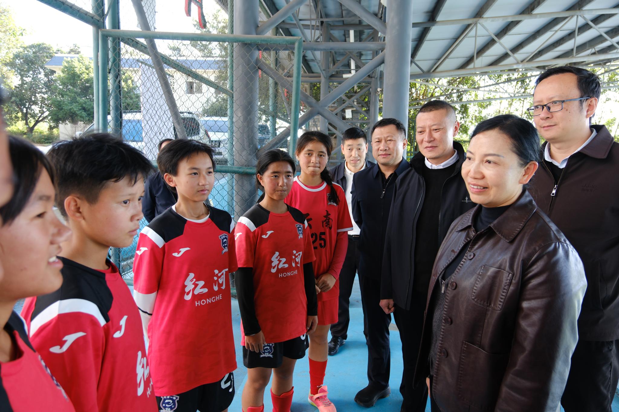 在红河县第一中学,罗萍详细询问教学设施、特色课程、校园安全及女足发展情况,鼓励学校深化特色办学,注重学生综合素质培养,加强女足梯队建设;同时要落实好校园安全主体责任,全方位守护学生健康成长。