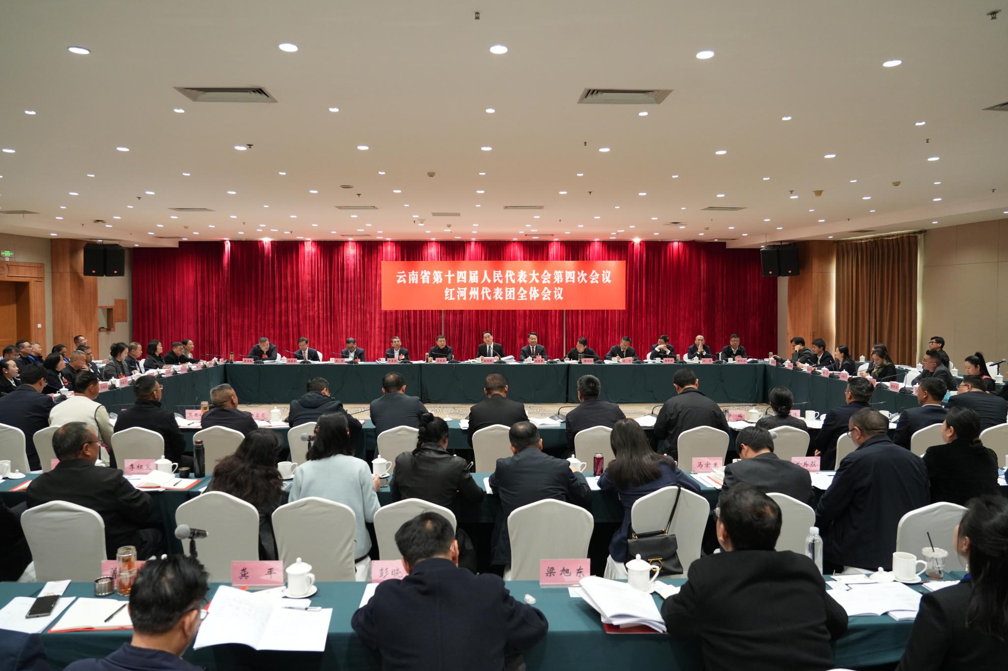 1月28日下午,出席云南省第十四届人民代表大会第四次会议的红河州代表团举行全体会议,认真审议省政府工作报告,审查省“十五五”规划纲要草案。云南省委常委、常务副省长赵俊民参加审议。红河州代表团团长赵瑞君主持会议。
