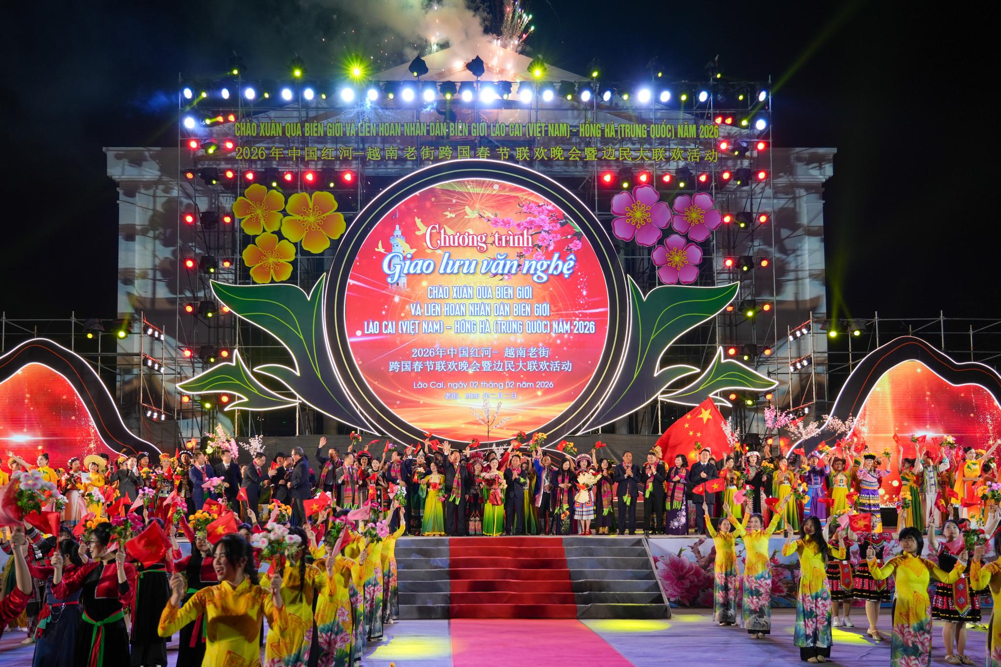 春临边境,情谊绵长。2月2日晚,以“同心筑厚谊 携手共发展”为主题的2026年中越跨国春节联欢晚会暨边民大联欢活动在越南老街省老街坊举行。