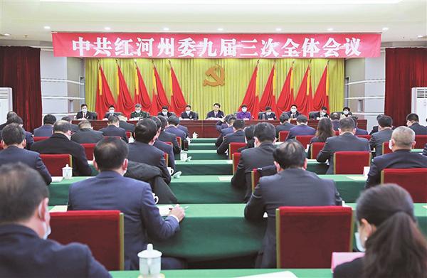 1月17日下午,中国共产党红河哈尼族彝族自治州第九届委员会第三次全体会议在蒙自举行。