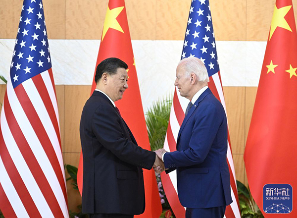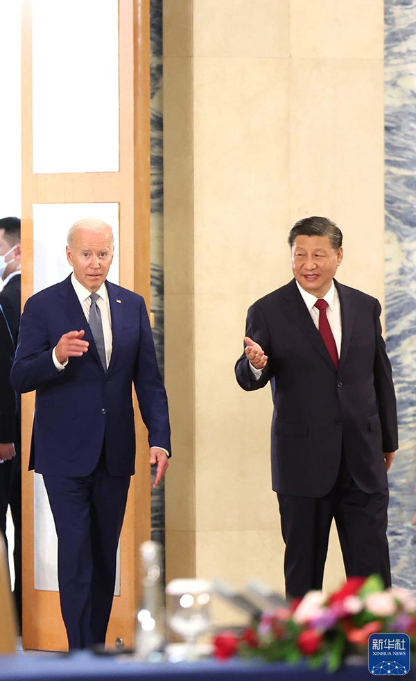 当地时间11月14日下午,国家主席习近平在印度尼西亚巴厘岛同美国总统拜登举行会晤。新华社记者 燕雁 摄