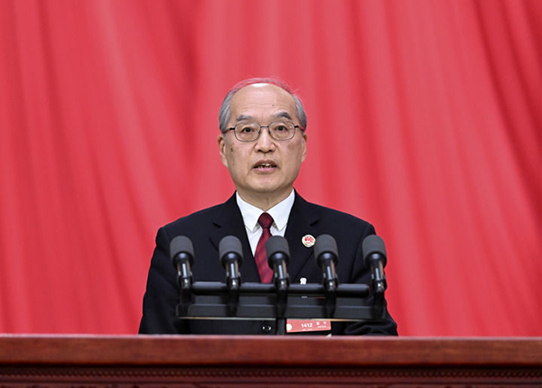 3月7日,十四届全国人大一次会议在北京人民大会堂举行第二次全体会议。最高人民法院院长周强作最高人民法院工作报告。新华社记者 李涛 摄