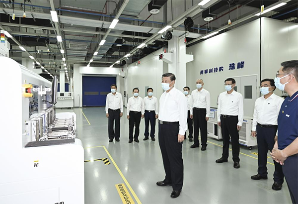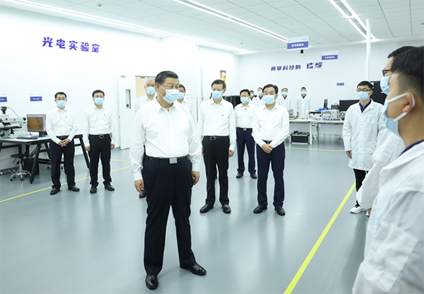 7月5日至7日,中共中央总书记、国家主席、中央军委主席习近平在江苏考察。这是5日下午,习近平在苏州华兴源创科技股份有限公司考察。新华社记者 谢环驰 摄