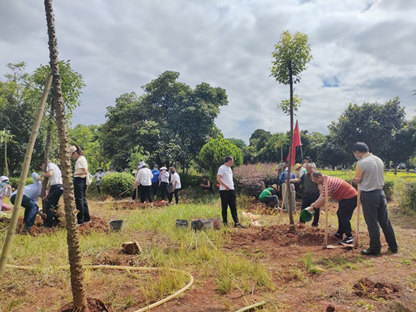随后,该局在蒙自红河大道与明珠路十字路口开展了“铸牢生态文明理念 践行生态环境保护”义务植树活动,积极用“绿水青山就是金山银山”的具体实践来庆祝党的101岁生日,进一步强化生态环境保护意识和绿化家园责任感,使“发展经济是为了民生,保护生态环境同样也是为了民生”的理念更加深入人心。活动中,该局80余名干部职工在烈日下搬运树苗、挥锄挖坑、填土栽种,合力精心种下香樟树、攀枝花等树苗130余株。此次活动充分发挥了支部党建引领作用,进一步强化了支部凝聚力。