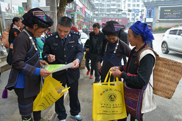 建水:建水县森林公安局主要是通过发放宣传海报、野生动植物保护宣传资料和粘贴各种宣传贴画等向广大群众宣传湿地、野生动植物保护、森林防火等法律法规知识。