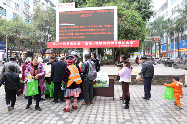 绿春:绿春县森林公安局通过展示宣传牌、宣传标语、发放宣传单、移动宣传车等形式围绕主体进行宣传。活动中,共设立“世界湿地日”宣传活动点1点,悬挂大幅宣传标语26幅,发放“关注湿地、爱护湿地”和湿地基本知识宣传单600余份,出动宣传车辆1辆次。通过宣传,进一步提高了人民群众保护湿地的意识,促进了绿春生态文明建设可持续发展。