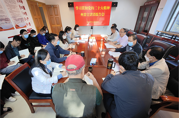 11月21日,学习贯彻党的二十大精神州委宣讲团报告会在州科技局举行。州委宣讲团成员、州科技局党组书记、局长刘杰作宣讲报告。