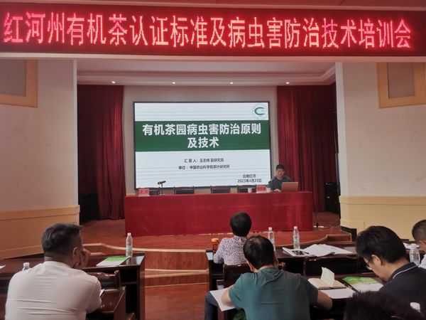 近日,为全面贯彻落实《云南省茶叶产业高质量发展三年行动工作方案(2023—2025 年)》和州委州政府办公室《红河州高原特色现代农业抓有机创名牌育龙头三年行动计划》的决策部署,州市场监管局和州农业农村局联合邀请中国农业科学院茶叶研究所专家,以理论讲授和实地指导相结合的方式,召开了“有机茶认证标准及病虫害防治技术培训会”,助力全州茶叶产业绿色、高质量发展。